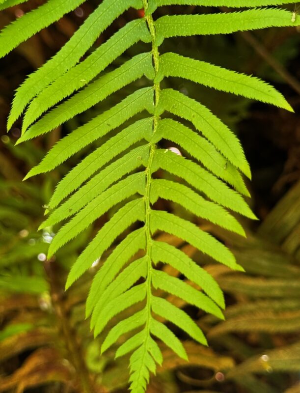 Ferns! We saw three — Western Bracken fern, Coastal Wood fern and Western Sword fern so it was a great place to differentiate them. See below for the little ‘swords’ on the latter.