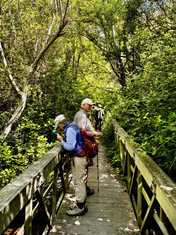 Cindy Roessler, one of the leaders, and an active volunteer with the local CNPS-SLO chapter, recommended the trail during hot summer months, saying the coolness of the riparian canopy and running water makes for a pleasant experience year-round.