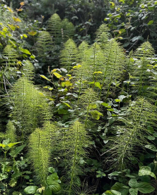 Common Horsetail (Equisetum arvense) – did you know these ancient plants go back 300-500 million years, and they evolved from towering trees with their small descendants residing in wetlands.